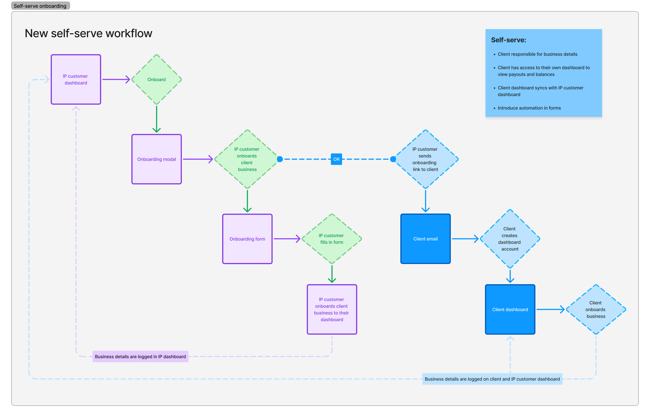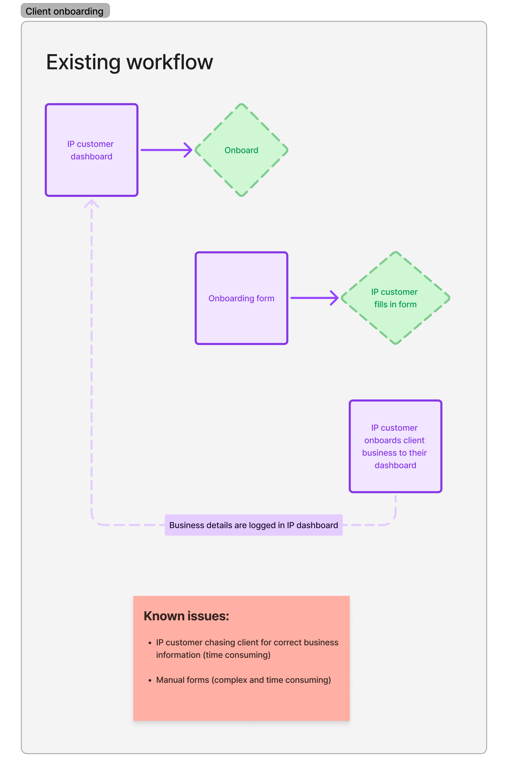 By shifting the responsibility of onboarding from the IP customer to their client a new workflow for onboarding via the dashboard was established.