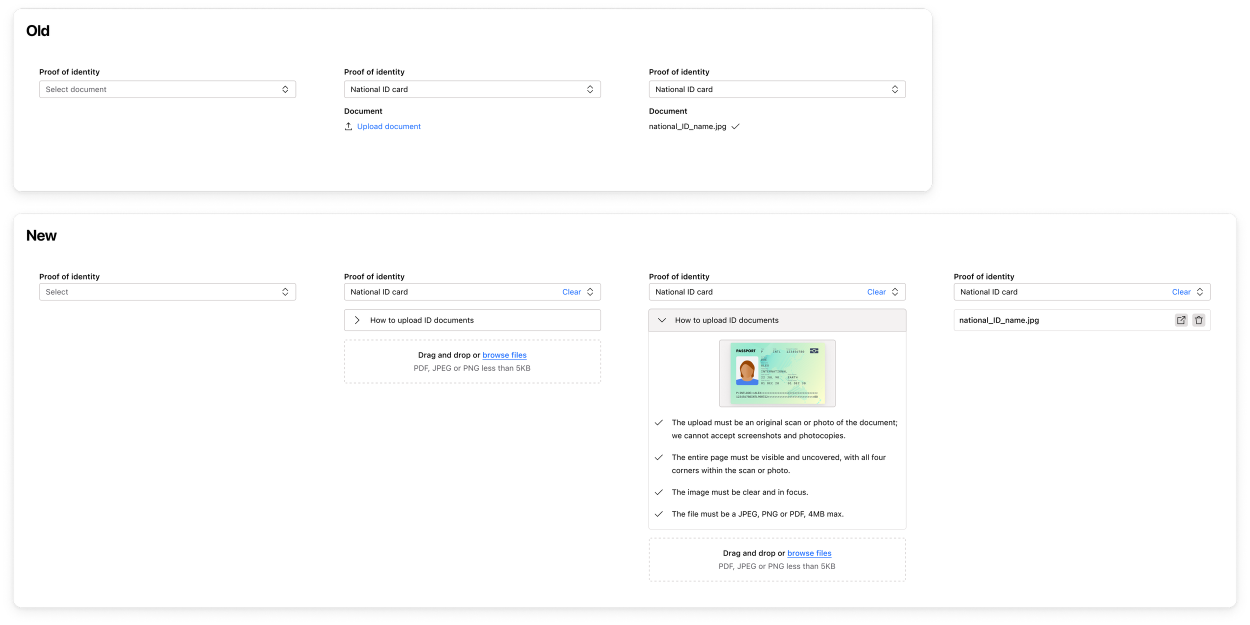 Components like document upload were refined to provide clear instructions and context, ensuring users know exactly which documents to upload and how to complete the task smoothly. This helped the time-to-live metric.